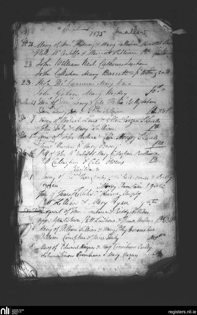 Mallow; County of Cork; Diocese of Cloyne. Baptisms, Feb. 1835 to Mar. 1835