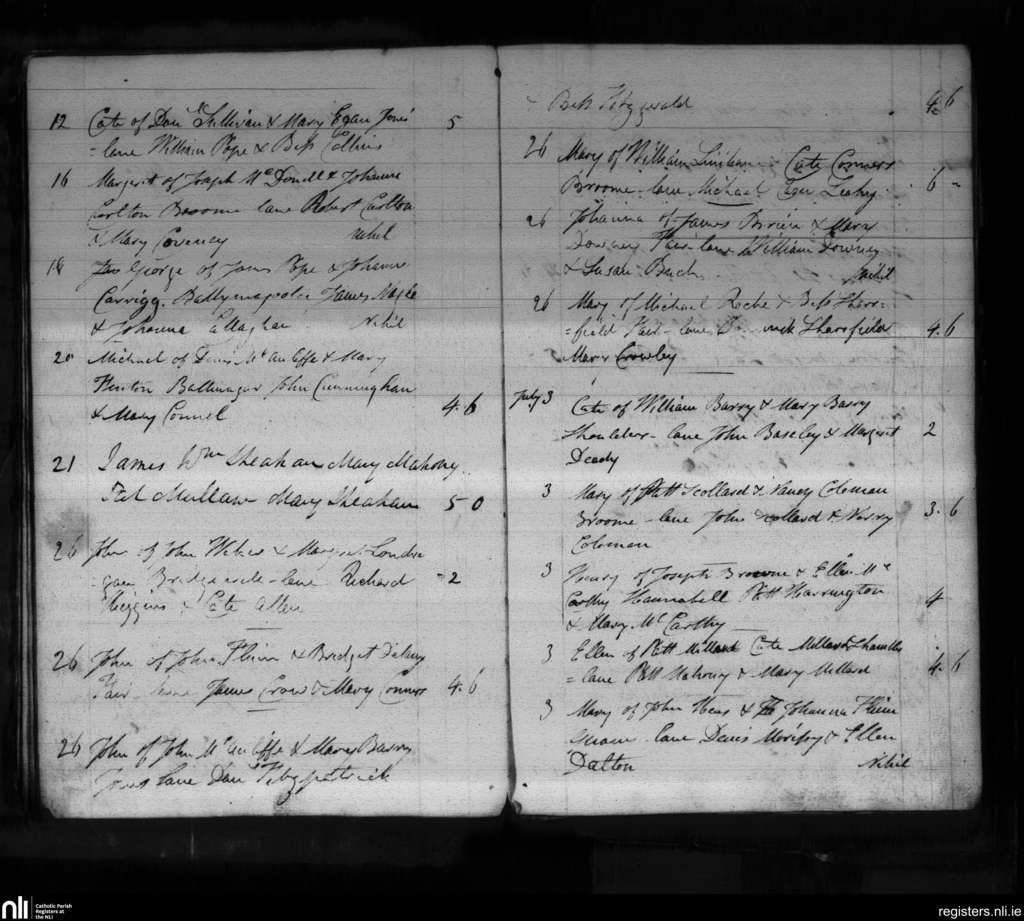 Mallow; County of Cork; Diocese of Cloyne. Baptisms, June 1836 to July 1836