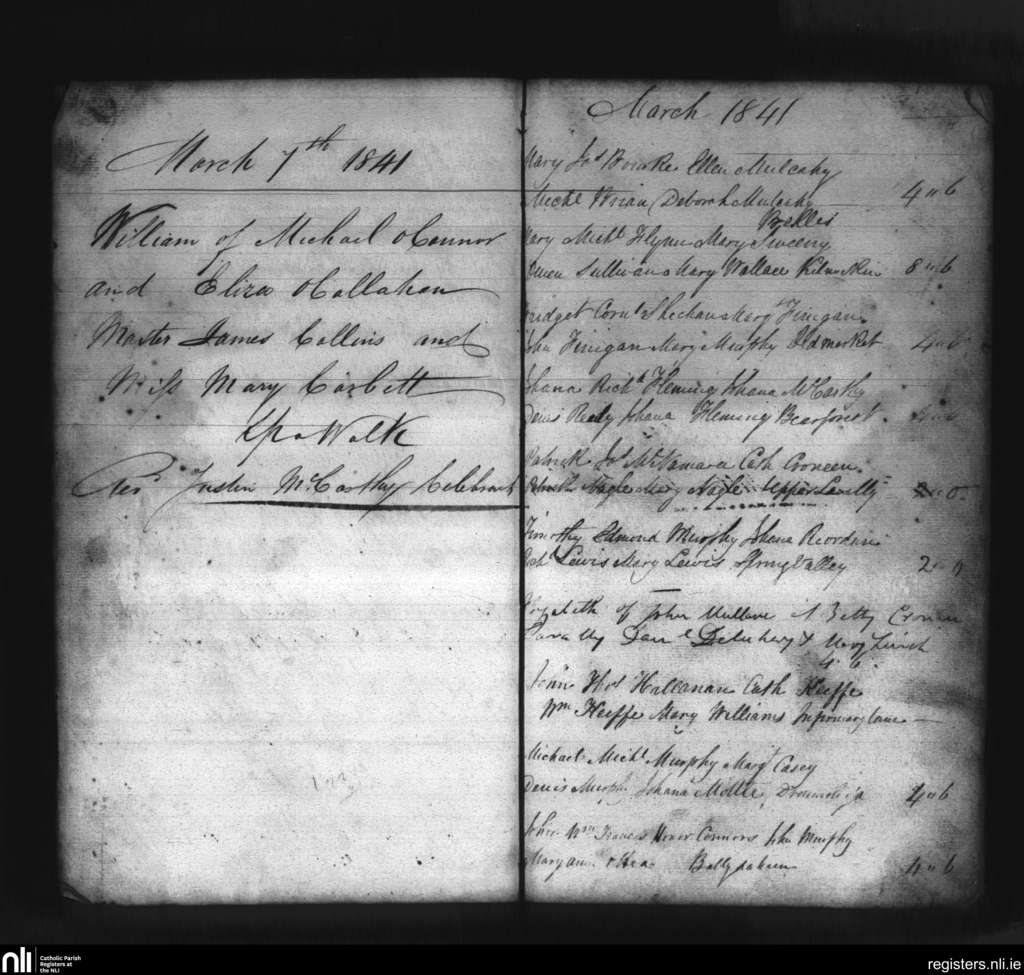 Mallow; County of Cork; Diocese of Cloyne. Baptisms, Mar. 1841