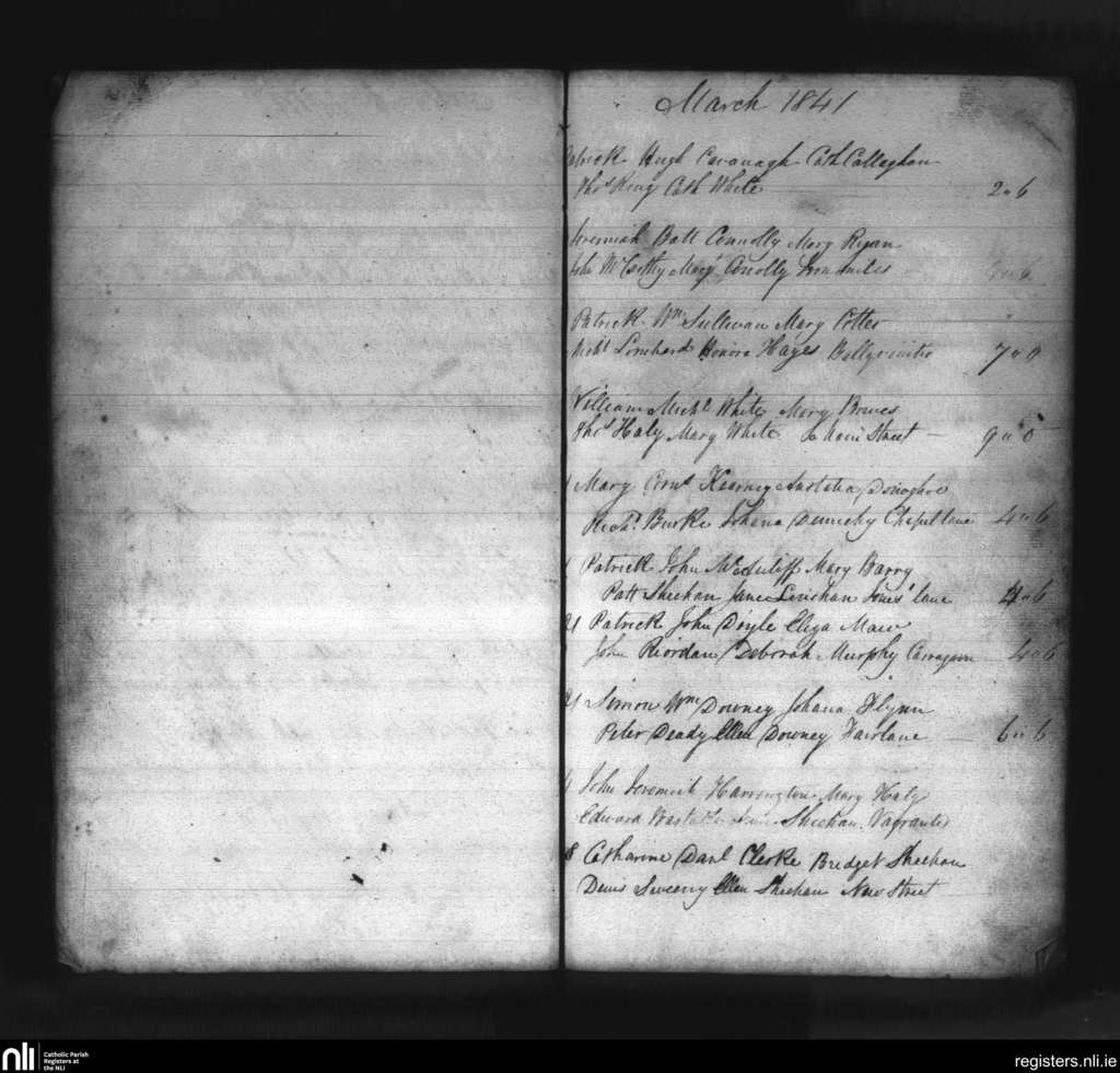 Mallow; County of Cork; Diocese of Cloyne. Baptisms, Mar. 1841