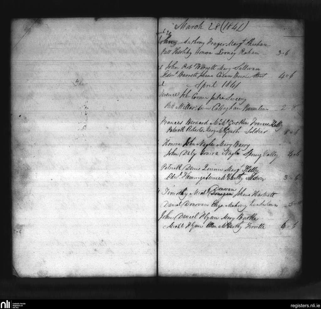 Mallow; County of Cork; Diocese of Cloyne. Baptisms, Mar. 1841