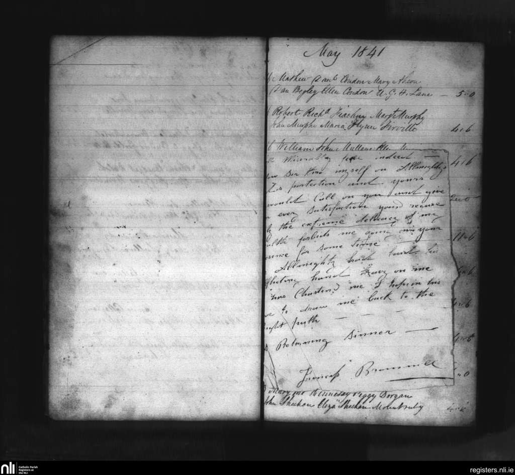 Mallow; County of Cork; Diocese of Cloyne. Baptisms, May 1841