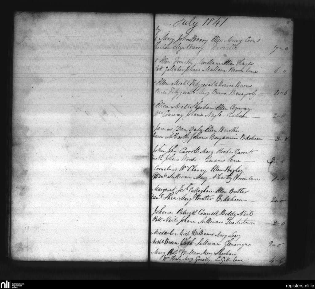 Mallow; County of Cork; Diocese of Cloyne. Baptisms, July 1841
