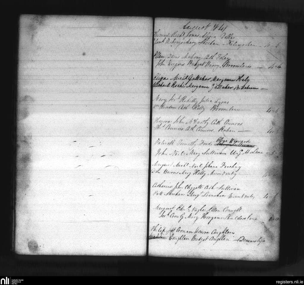 Mallow; County of Cork; Diocese of Cloyne. Baptisms, Aug. 1841