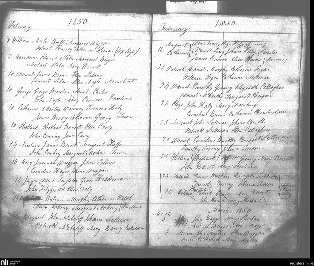 Mallow; County of Cork; Diocese of Cloyne. Marriages, Feb. 1860