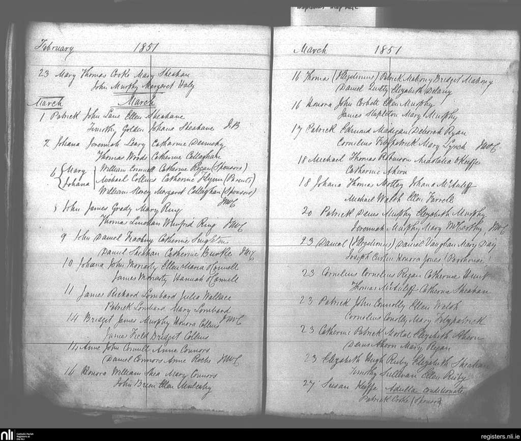 Mallow; County of Cork; Diocese of Cloyne. Marriages, May 1857 to Aug. 1857