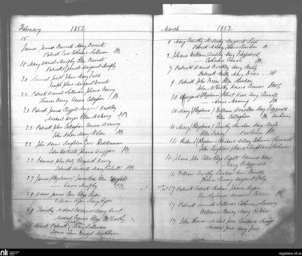 Mallow; County of Cork; Diocese of Cloyne. Marriages, Feb. 1855 to Apr. 1855