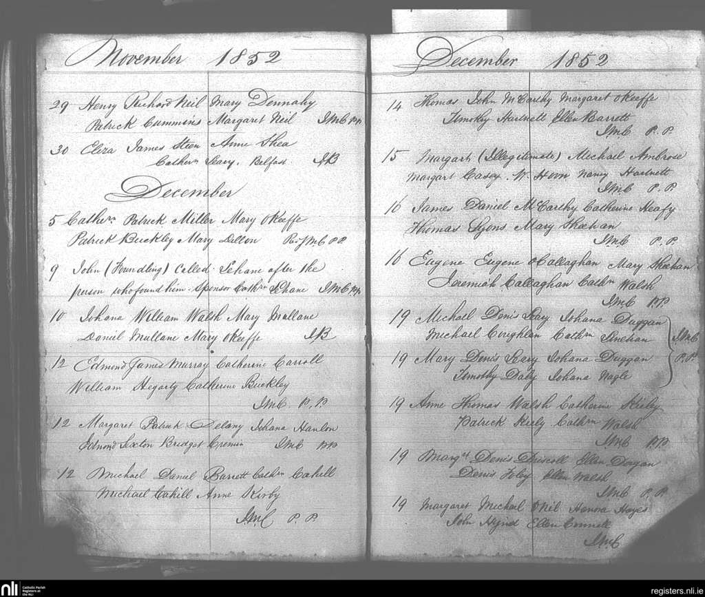 Mallow; County of Cork; Diocese of Cloyne. Marriages, July 1852 to Dec. 1852
