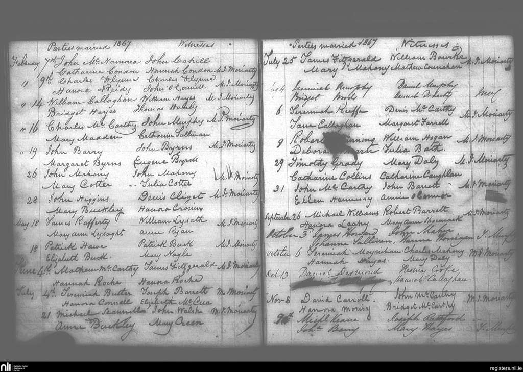 Mallow; County of Cork; Diocese of Cloyne. Marriages, Nov. 1860 to Feb. 1861