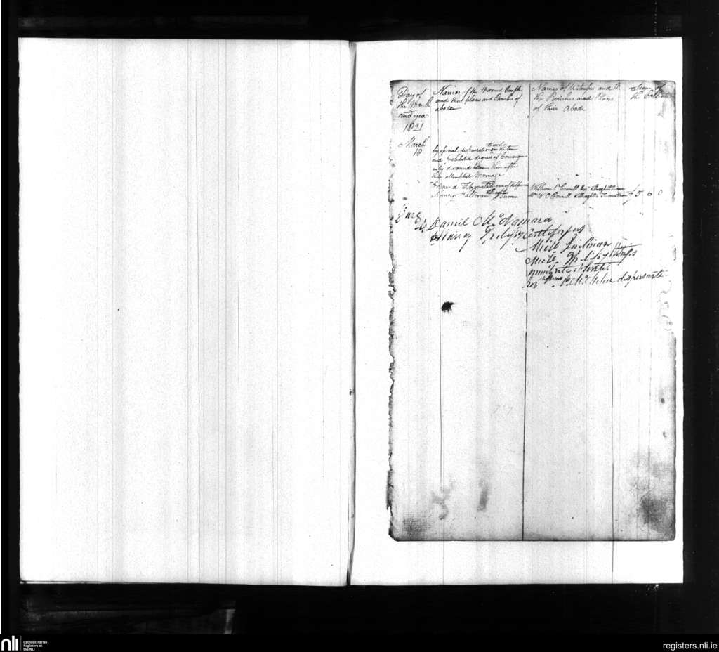 Doora and Kilraghtis; County of Clare; Diocese of Killaloe. Baptisms, Mar. 1821 to June 1821
