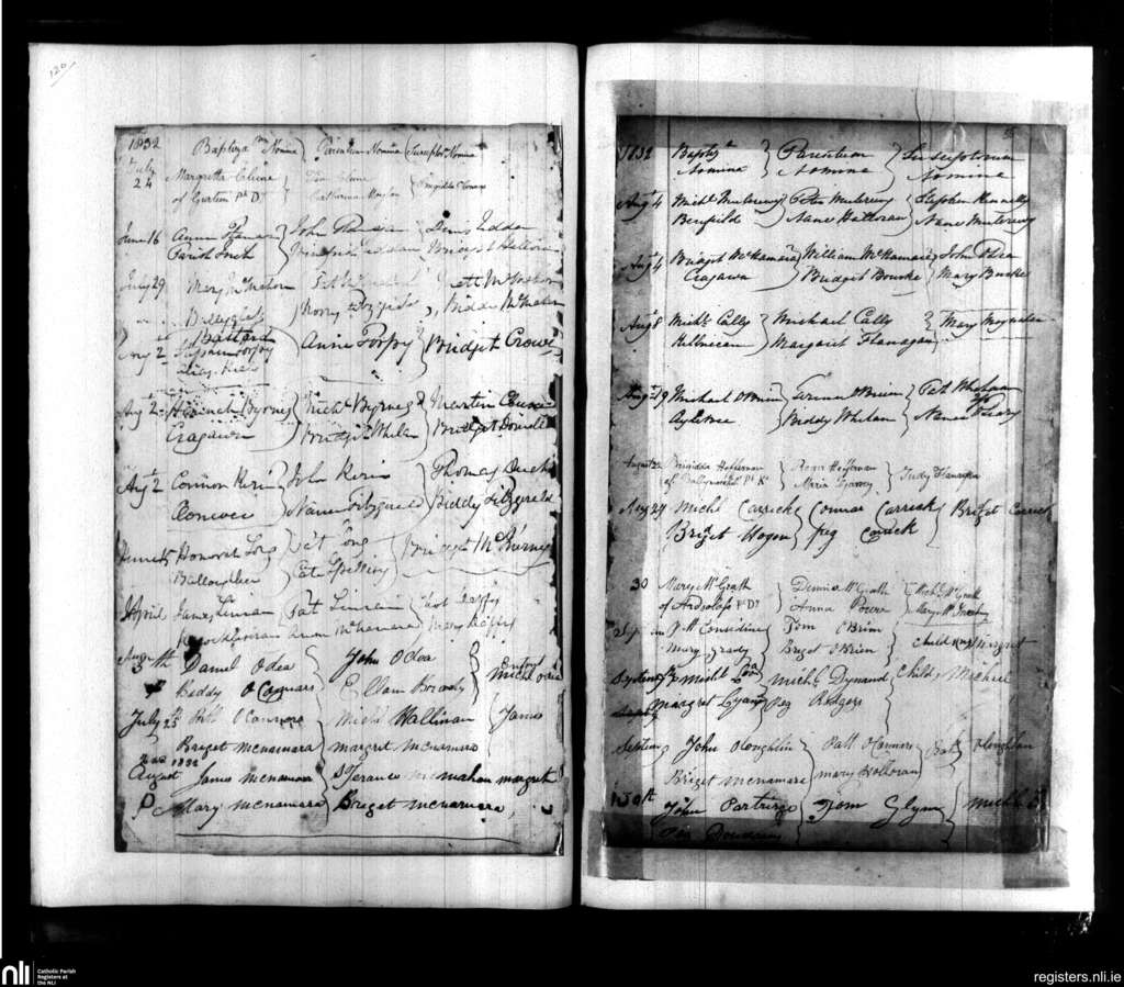 Doora and Kilraghtis; County of Clare; Diocese of Killaloe. Baptisms, Apr. 1832 to Sep. 1832
