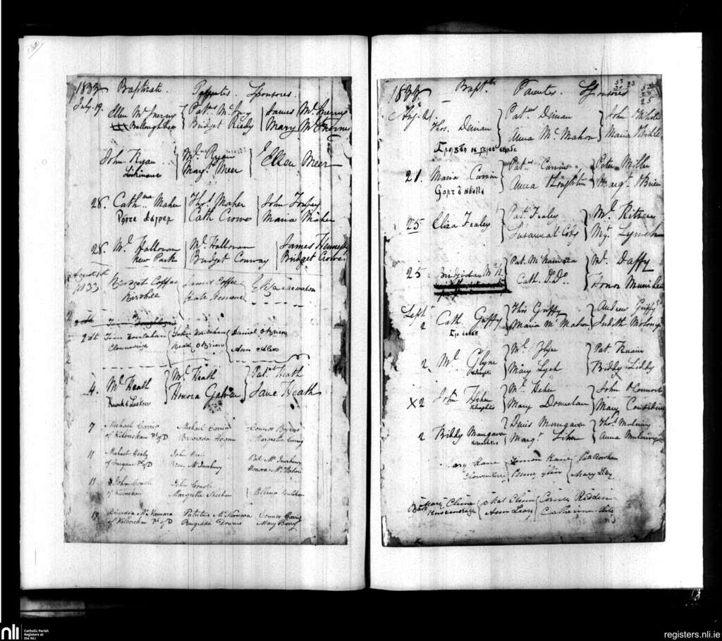 Doora and Kilraghtis; County of Clare; Diocese of Killaloe. Baptisms, July 1833 to Sep. 1833