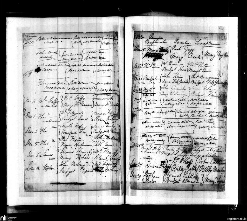 Doora and Kilraghtis; County of Clare; Diocese of Killaloe. Baptisms, Nov. 1833 to Dec. 1833