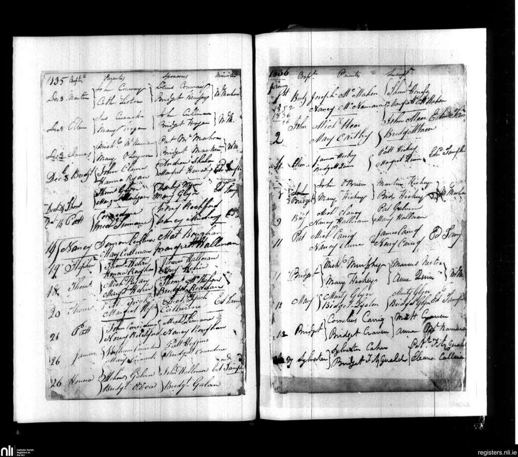 Doora and Kilraghtis; County of Clare; Diocese of Killaloe. Baptisms, Dec. 1835 to Jan. 1836
