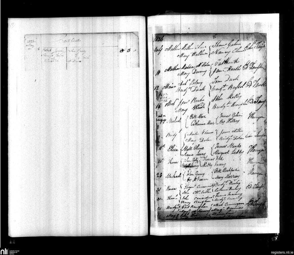 Doora and Kilraghtis; County of Clare; Diocese of Killaloe. Baptisms, May 1822 to July 1836