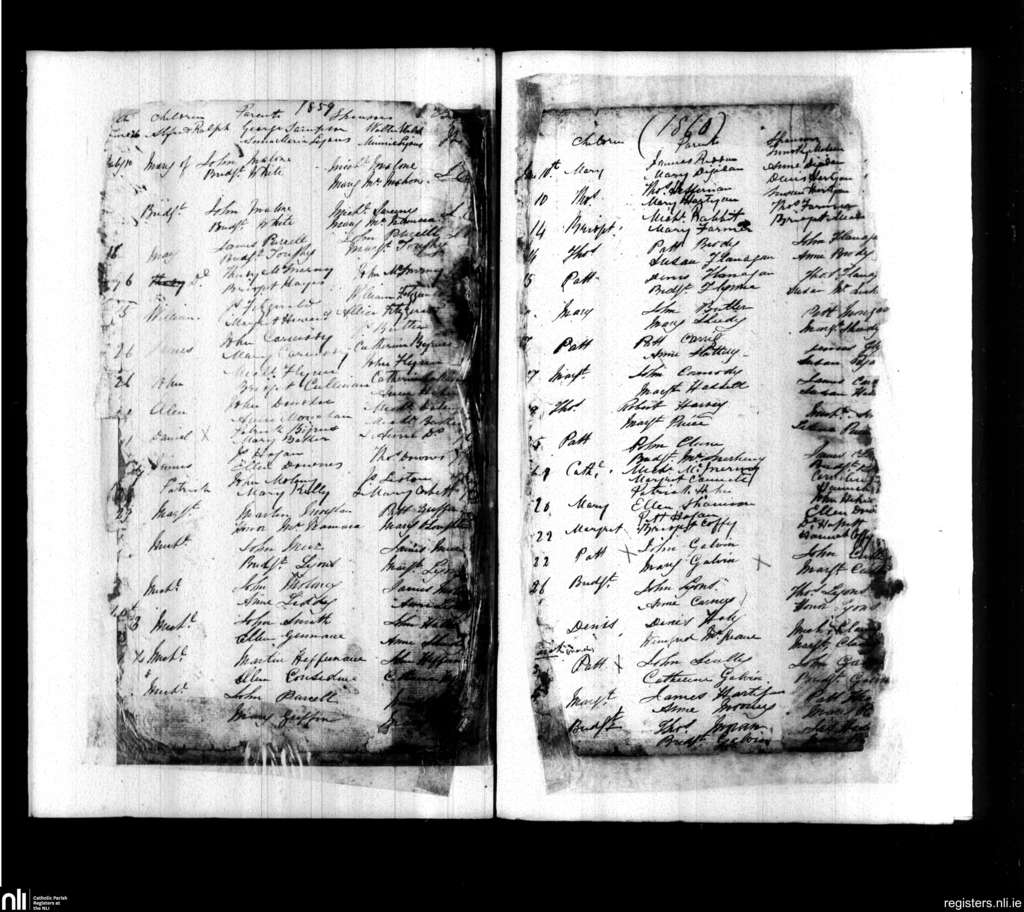 Doora and Kilraghtis; County of Clare; Diocese of Killaloe. Baptisms, Feb. 1859 to Mar. 1860