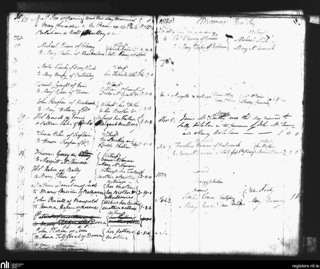 Doora and Kilraghtis; County of Clare; Diocese of Killaloe. Marriages, Feb. 1827 to Mar. 1829