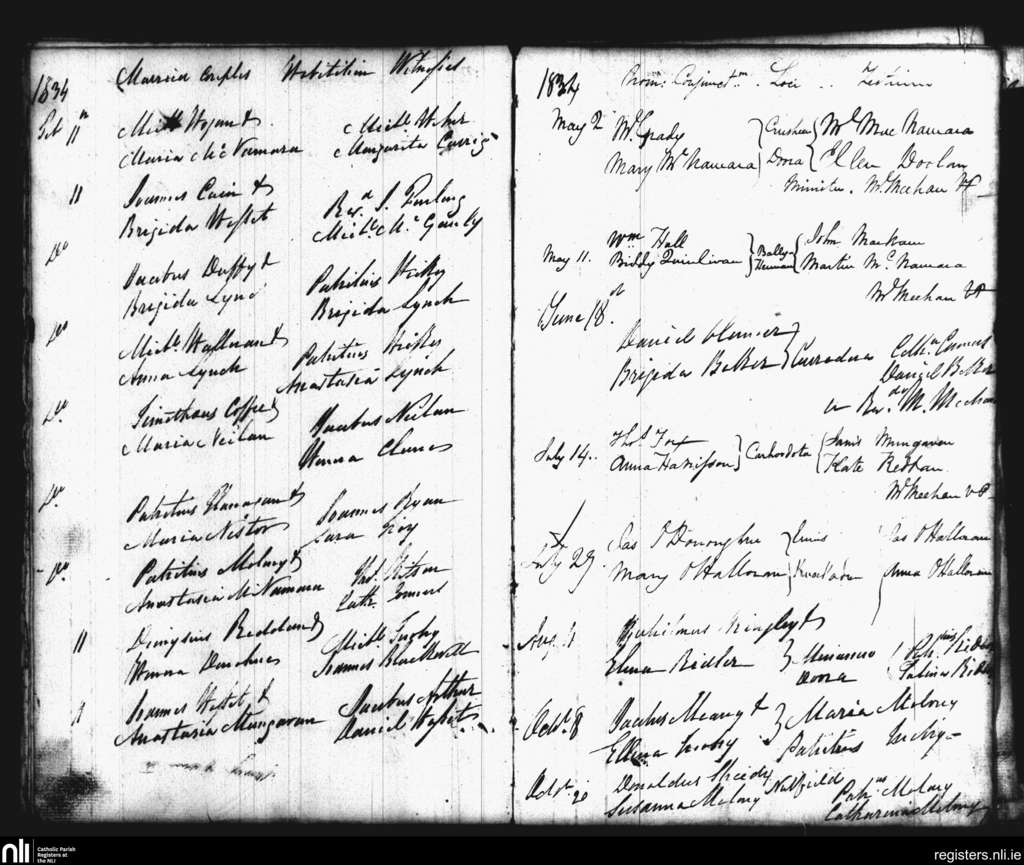 Doora and Kilraghtis; County of Clare; Diocese of Killaloe. Marriages, Feb. 1834 to Oct. 1834