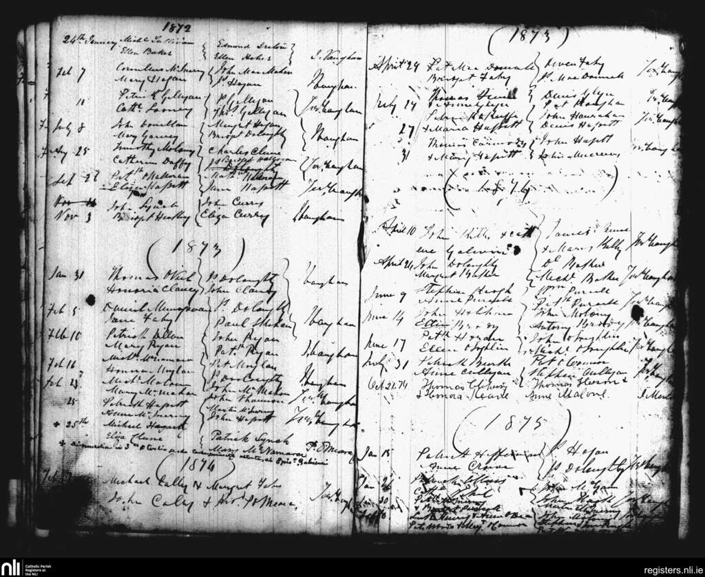 Doora and Kilraghtis; County of Clare; Diocese of Killaloe. Marriages, Jan. 1872 to Feb. 1875