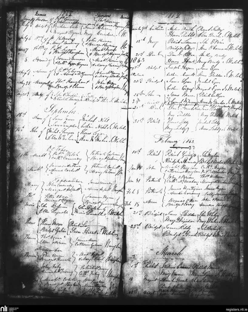 Doora and Kilraghtis; County of Clare; Diocese of Killaloe. Baptisms, June 1862 to Mar. 1863