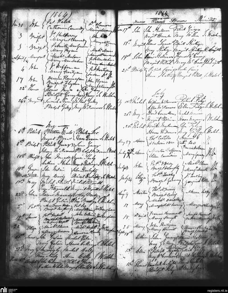 Doora and Kilraghtis; County of Clare; Diocese of Killaloe. Baptisms, Jan. 1864 to Sep. 1864