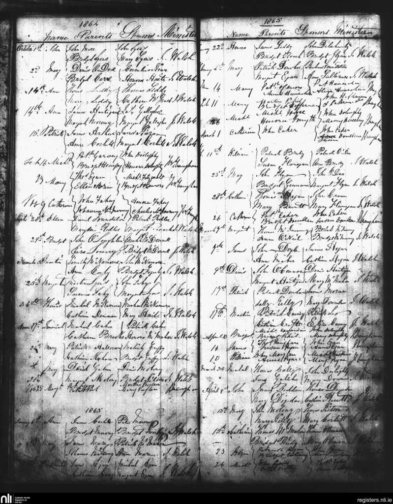 Doora and Kilraghtis; County of Clare; Diocese of Killaloe. Baptisms, Sep. 1864 to Apr. 1865