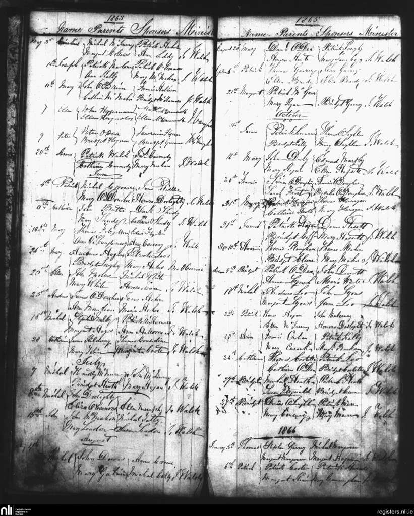 Doora and Kilraghtis; County of Clare; Diocese of Killaloe. Baptisms, May 1865 to Jan. 1866