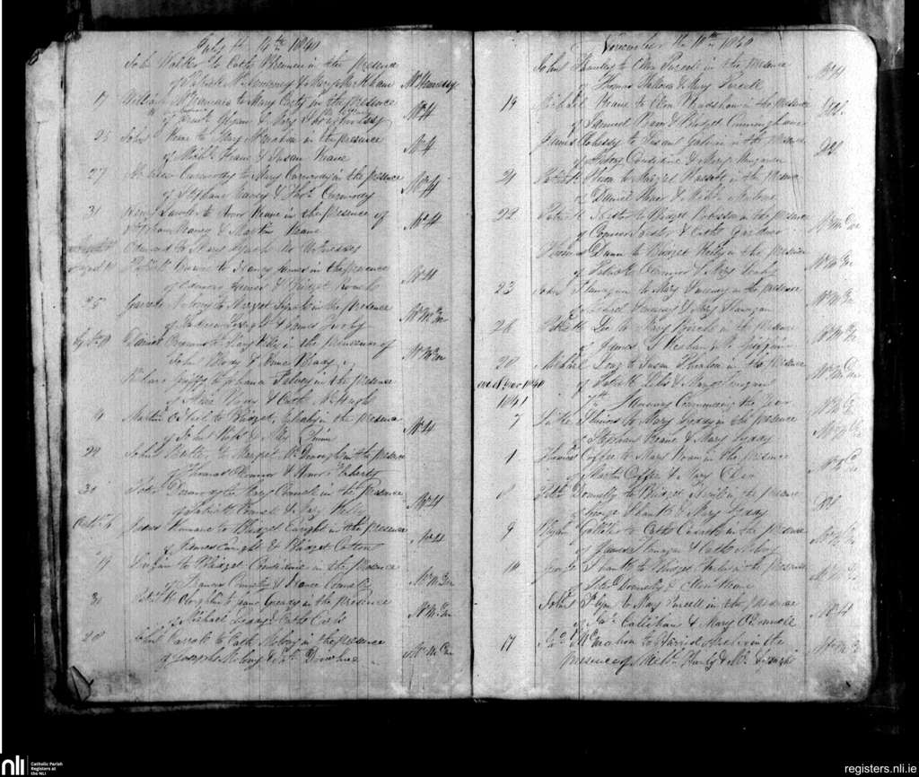 Drumcliff; County of Clare; Diocese of Killaloe. Marriages, July 1840 to Jan. 1841