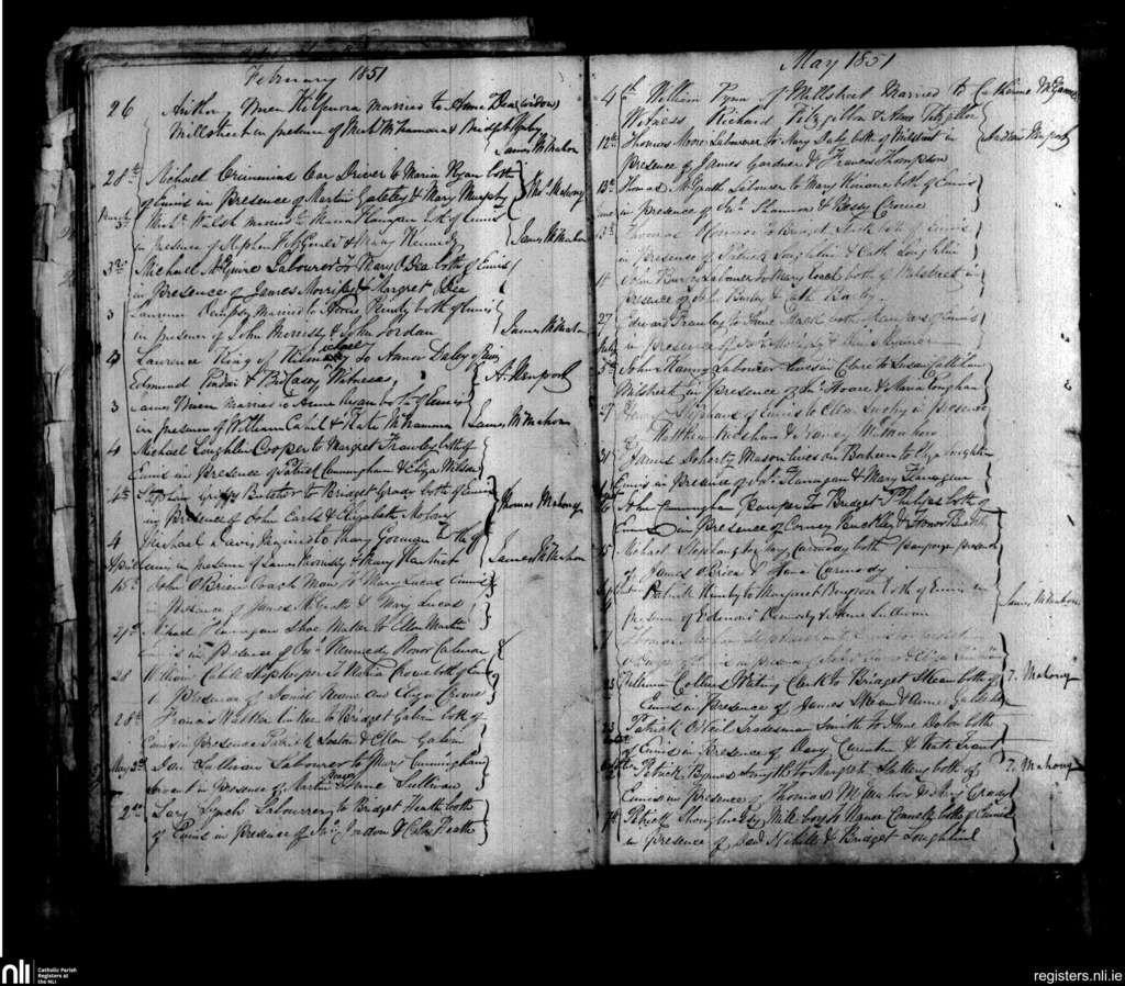 Drumcliff; County of Clare; Diocese of Killaloe. Marriages, Feb. 1851 to Aug. 1851