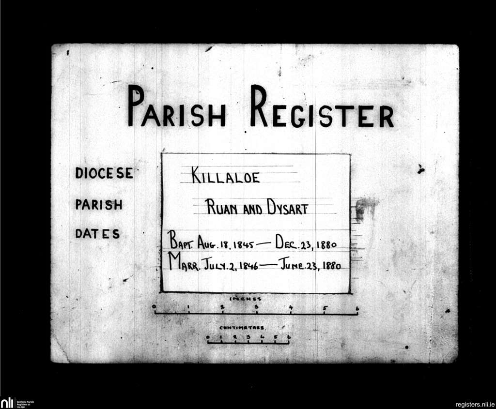 Ruan; County of Clare; Diocese of Killaloe. Baptisms, Marriages