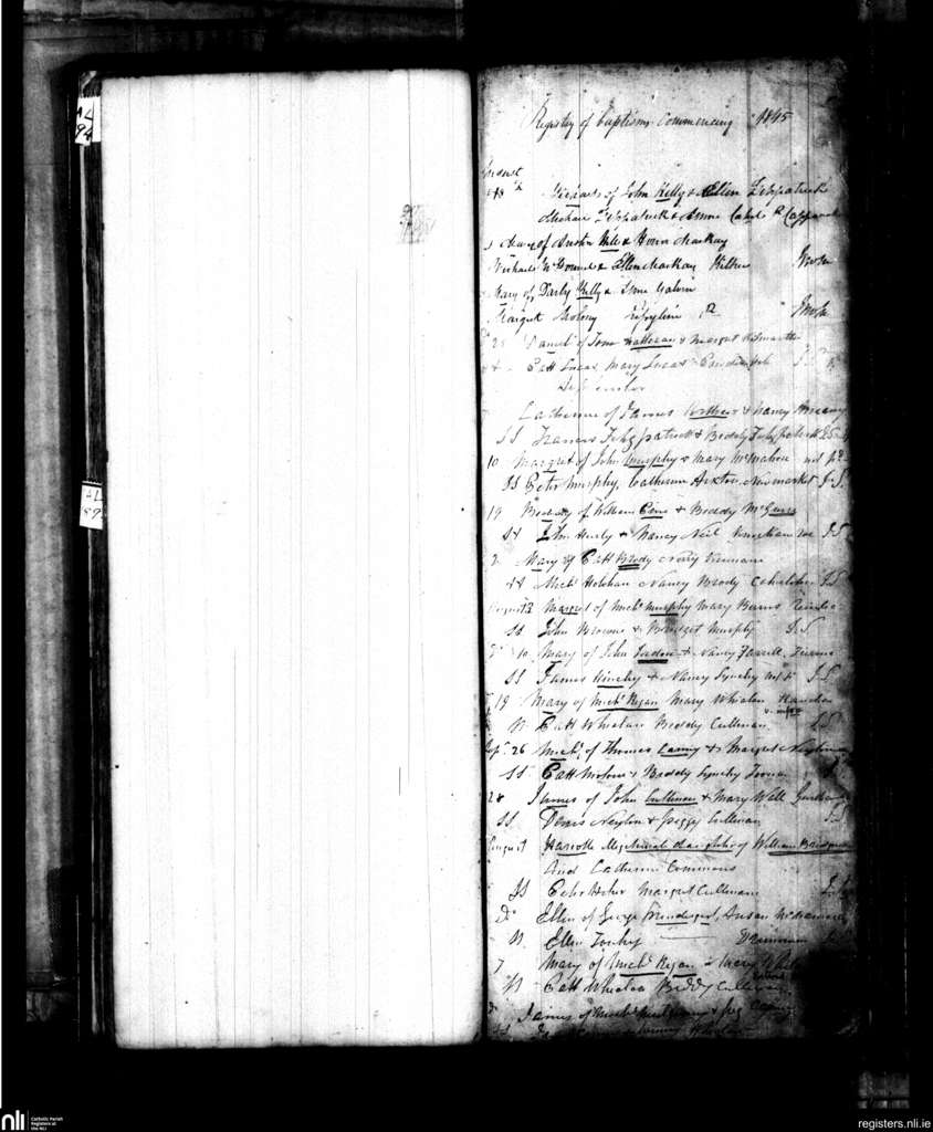 Ruan; County of Clare; Diocese of Killaloe. Baptisms, Aug. 1845 to Sep. 1845