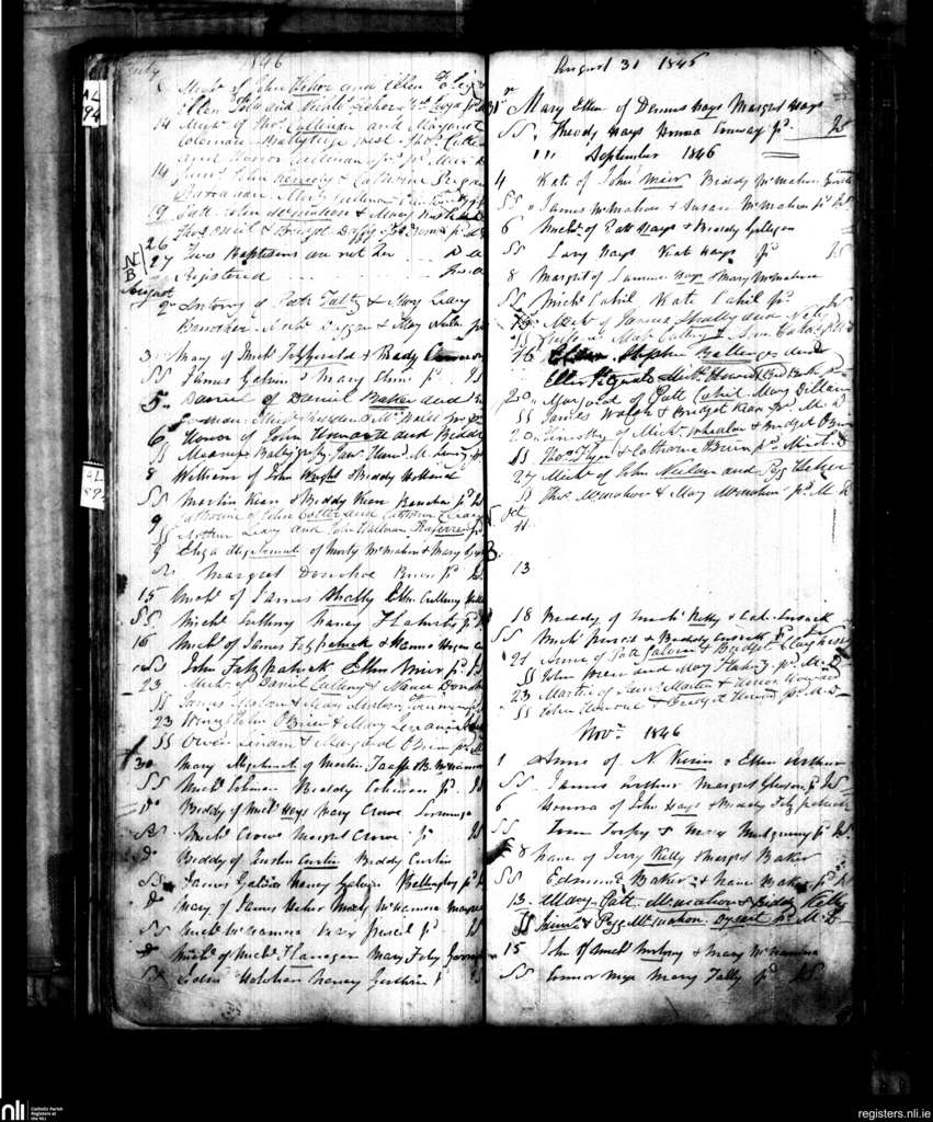 Ruan; County of Clare; Diocese of Killaloe. Baptisms, July 1846 to Nov. 1846