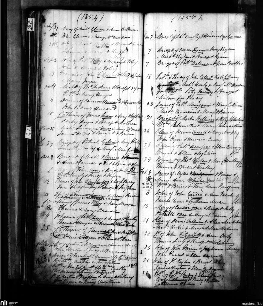Ruan; County of Clare; Diocese of Killaloe. Baptisms, Aug. 1854 to Feb. 1855