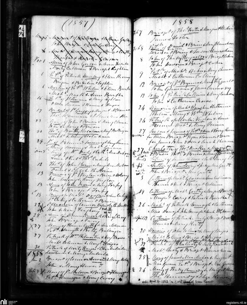 Ruan; County of Clare; Diocese of Killaloe. Baptisms, Nov. 1857 to Apr. 1858