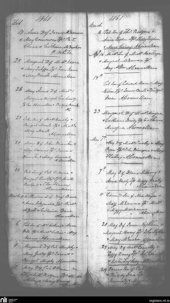 Feakle; County of Clare; Diocese of Killaloe. Baptisms, Feb. 1861 to May 1861