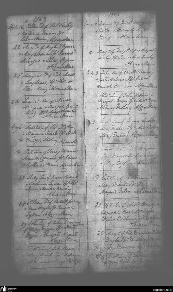 Feakle; County of Clare; Diocese of Killaloe. Baptisms, Apr. 1863 to Aug. 1863