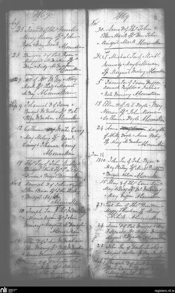 Feakle; County of Clare; Diocese of Killaloe. Baptisms, Aug. 1869 to Feb. 1870