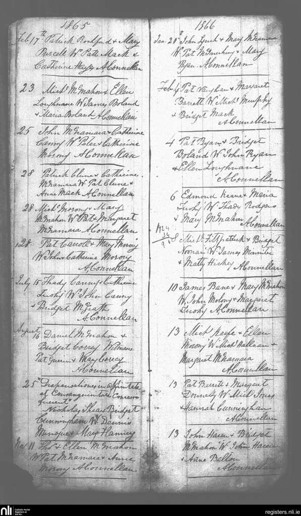 Feakle; County of Clare; Diocese of Killaloe. Marriages, Feb. 1865 to Feb. 1866