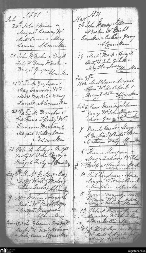 Feakle; County of Clare; Diocese of Killaloe. Marriages, Feb. 1871 to Apr. 1872