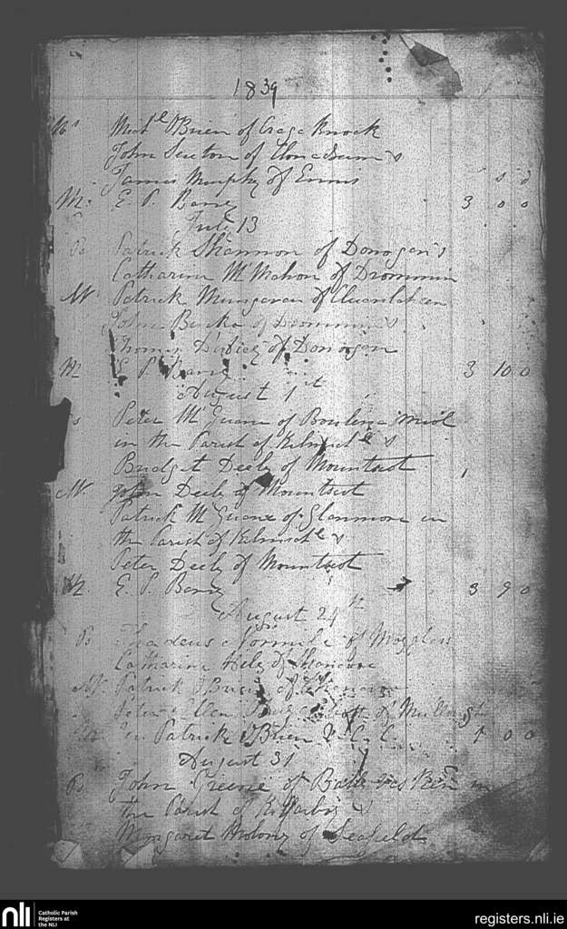 Kilmurry Ibricken; County of Clare; Diocese of Killaloe. Marriages, Apr. 1839 to Aug. 1839