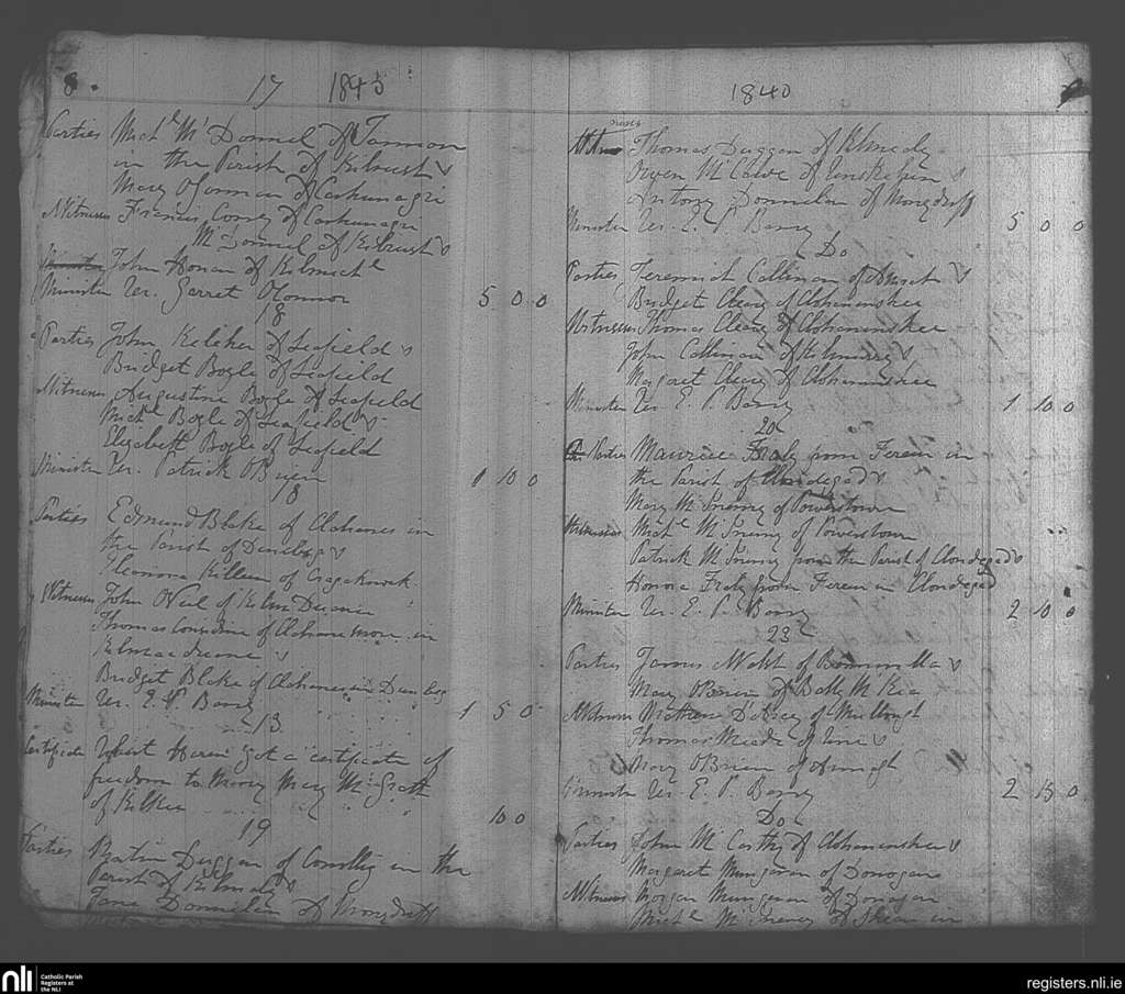 Kilmurry Ibricken; County of Clare; Diocese of Killaloe. Marriages, Feb. 1840