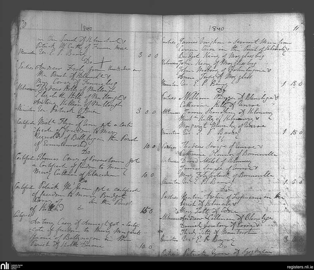 Kilmurry Ibricken; County of Clare; Diocese of Killaloe. Marriages, Feb. 1840