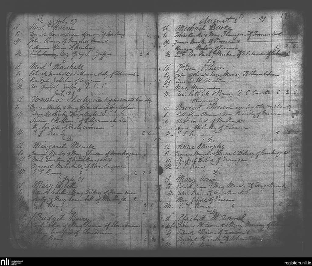 Kilmurry Ibricken; County of Clare; Diocese of Killaloe. Baptisms, July 1839 to Aug. 1839