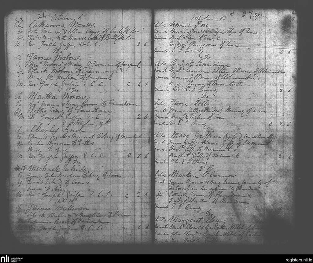 Kilmurry Ibricken; County of Clare; Diocese of Killaloe. Baptisms, Oct. 1839