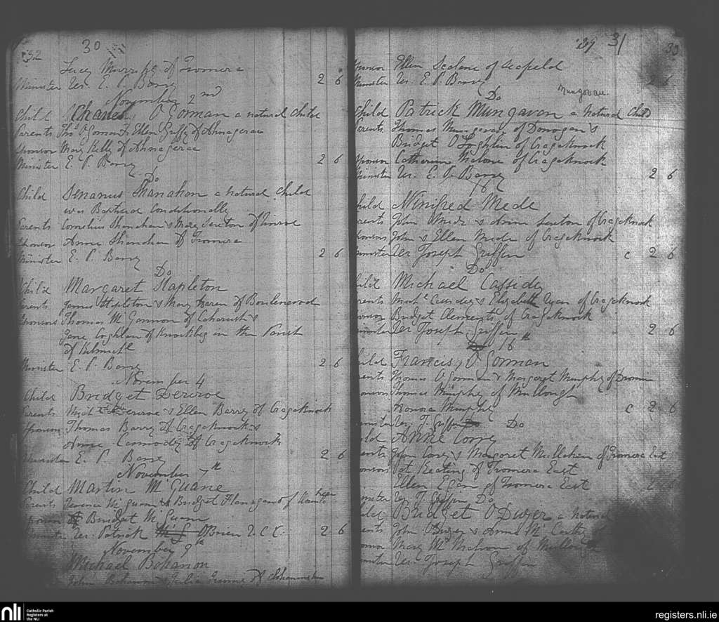 Kilmurry Ibricken; County of Clare; Diocese of Killaloe. Baptisms, Nov. 1839