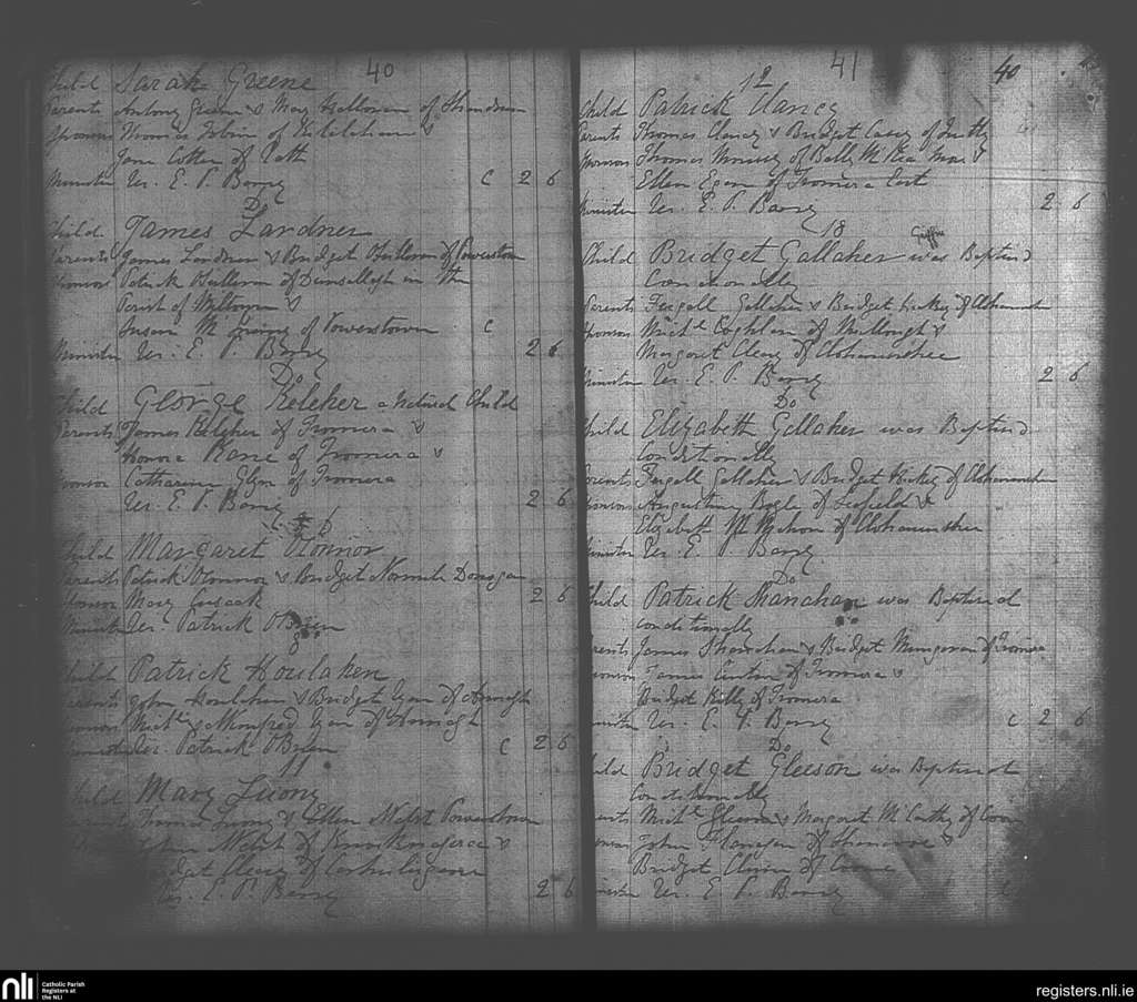 Kilmurry Ibricken; County of Clare; Diocese of Killaloe. Baptisms, Jan. 1840