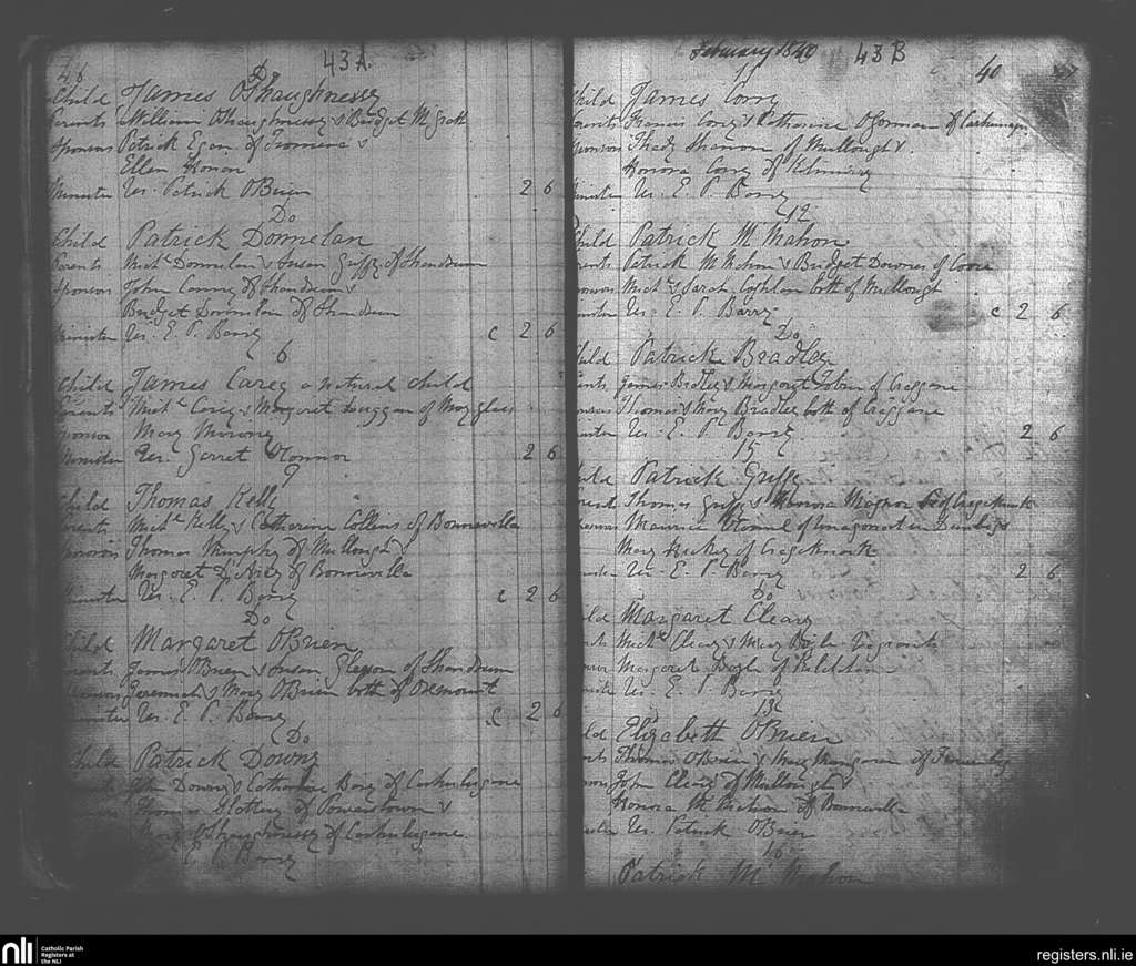 Kilmurry Ibricken; County of Clare; Diocese of Killaloe. Baptisms, Feb. 1840