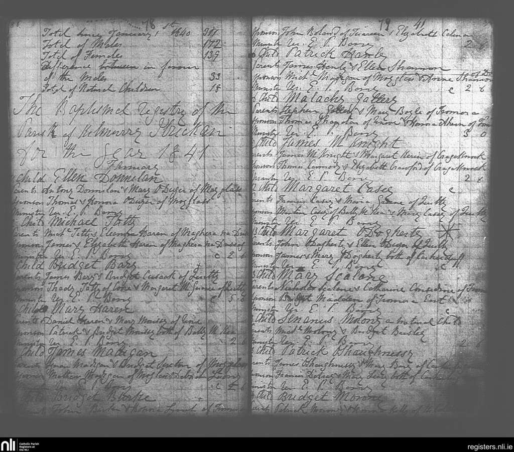 Kilmurry Ibricken; County of Clare; Diocese of Killaloe. Baptisms, Jan. 1841