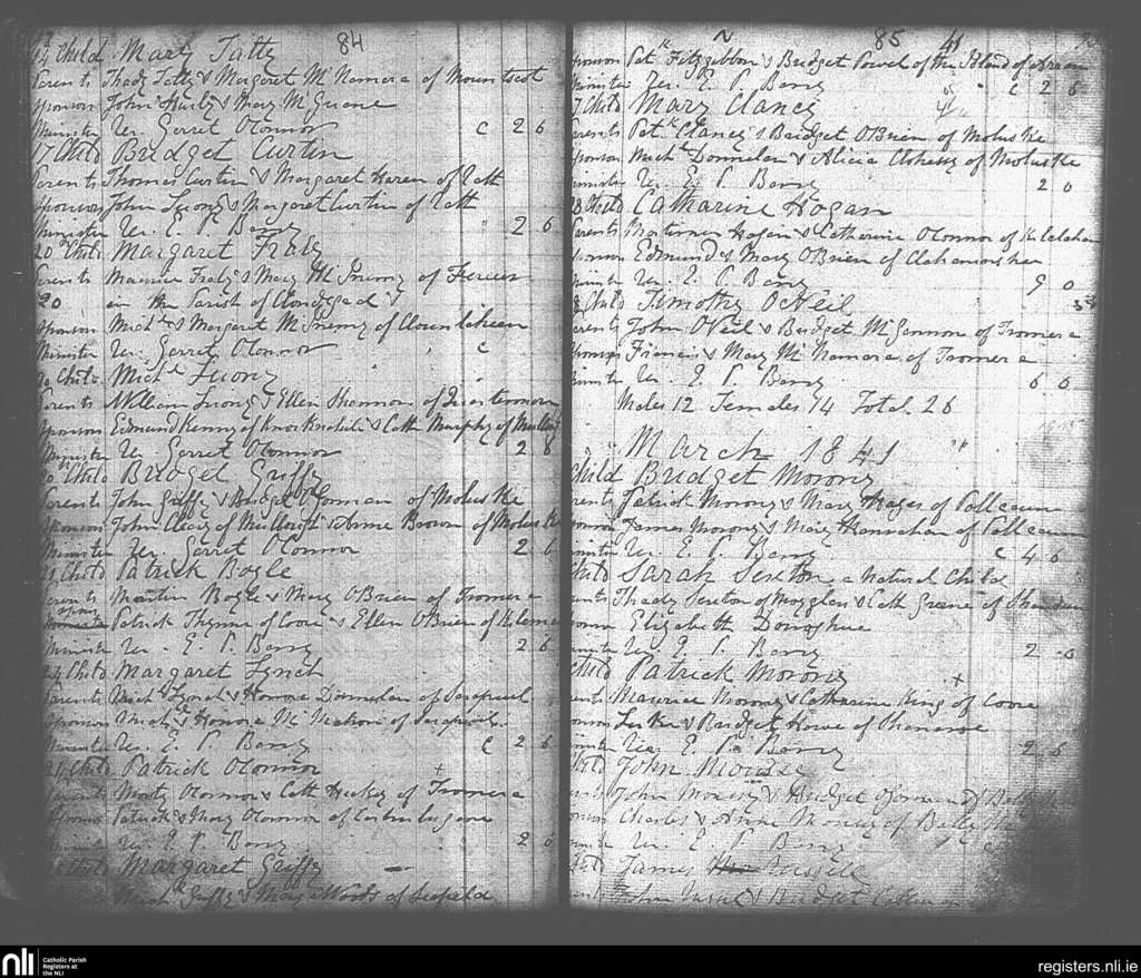 Kilmurry Ibricken; County of Clare; Diocese of Killaloe. Baptisms, Feb. 1841 to Mar. 1841