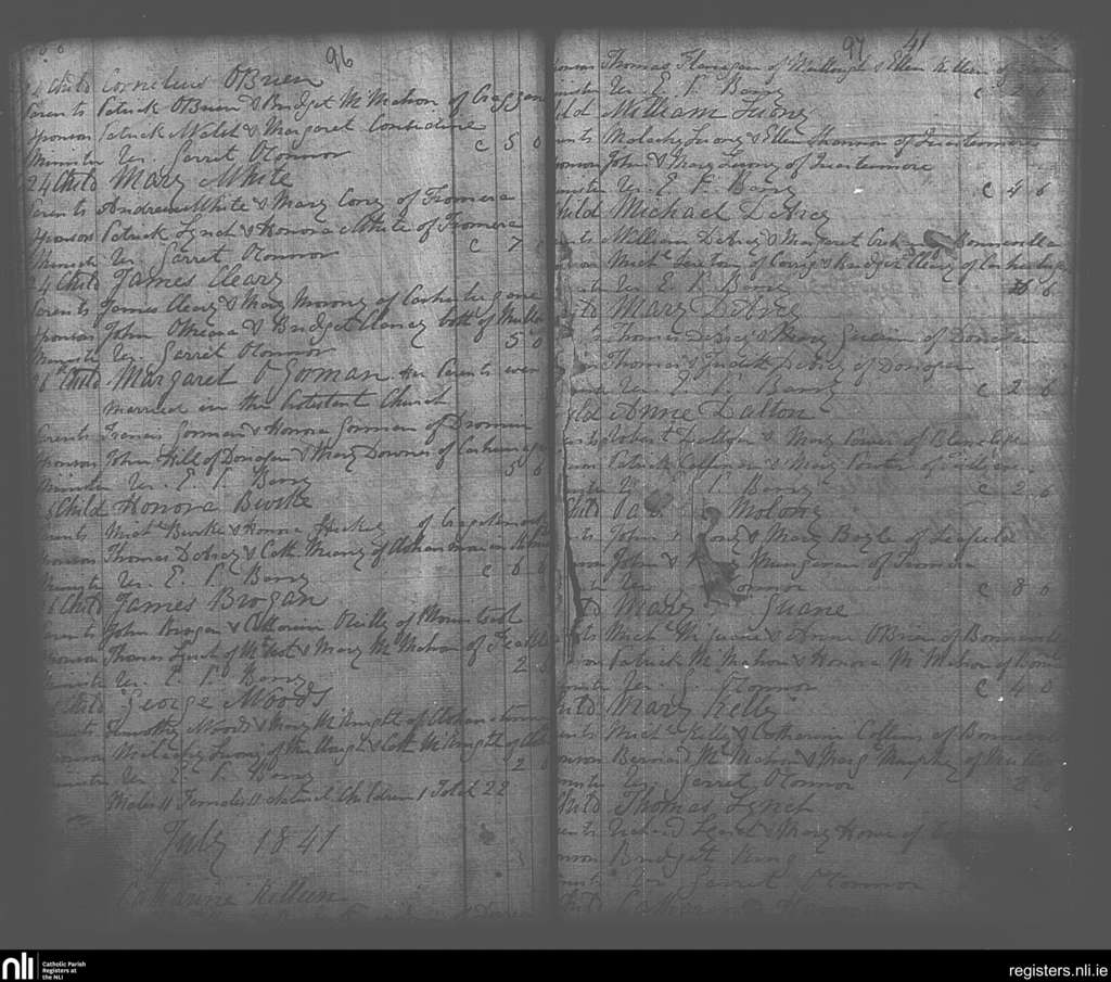 Kilmurry Ibricken; County of Clare; Diocese of Killaloe. Baptisms, June 1841 to July 1841